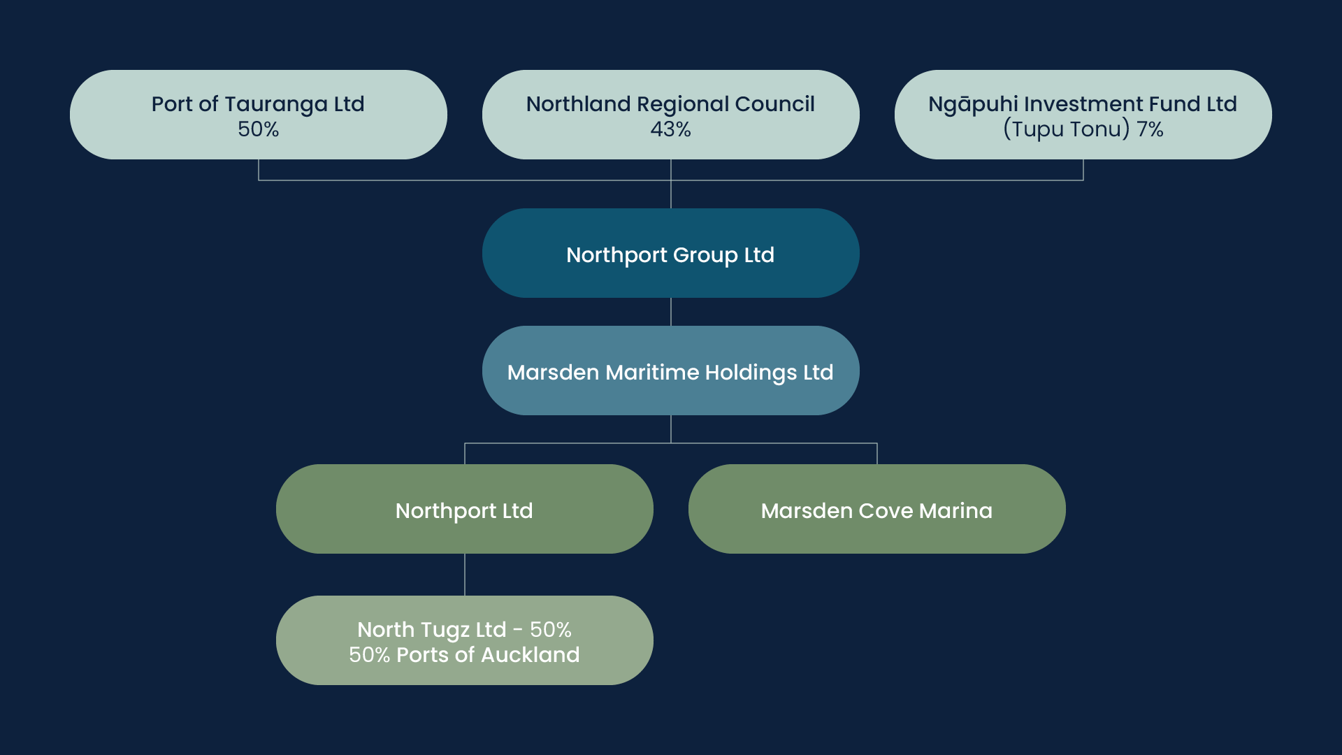 In February 2025, the company announced its intention to delist from the New Zealand Stock Exchange and transfer ownership to Northland Regional Council (43%), Port of Tauranga Ltd (50%) and Ngāpuhi Investment Fund Ltd (Tupu Tonu) 7%.